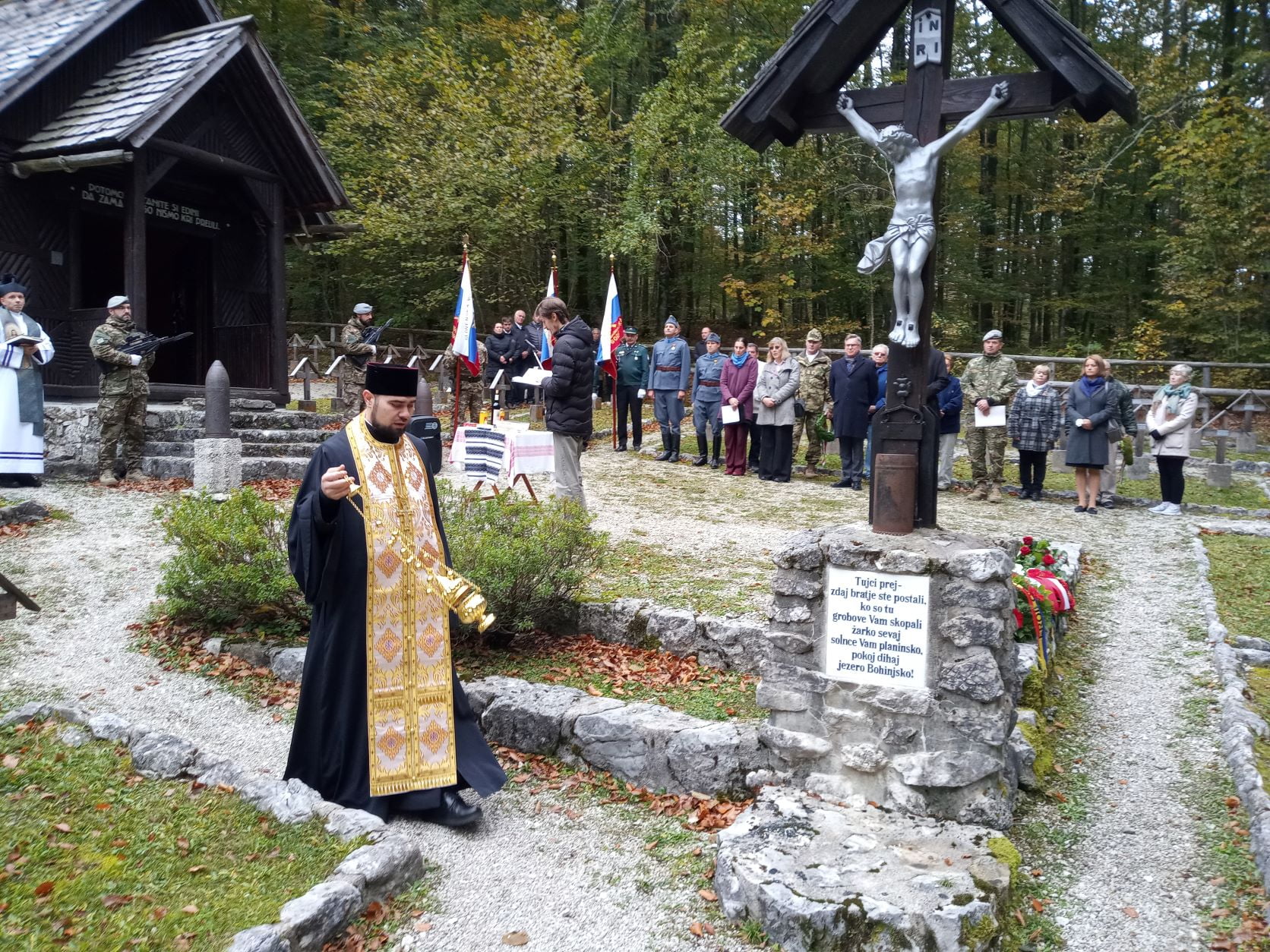 Slujba Parastasului a fost oficiată de către Părintele Pavel Goreanu în cadrul evenimentului de comemorare a soldaților ce odihnesc în acest cimitir, organizat în fiecare an de Primăria Bohinj. La eveniment au participat reprezentanți ai autorităților locale și centrale, ai Forțelor Armate ale Republicii Slovenia, precum și reprezentanți ai corpului diplomatic. Din partea Ambasadei României în Republica Slovenia a participat doamna Silvana Bolocan, consilier diplomatic, care a depus o coroană de flori cu tricolor în memoria ostașilor români ce odihnesc aici.