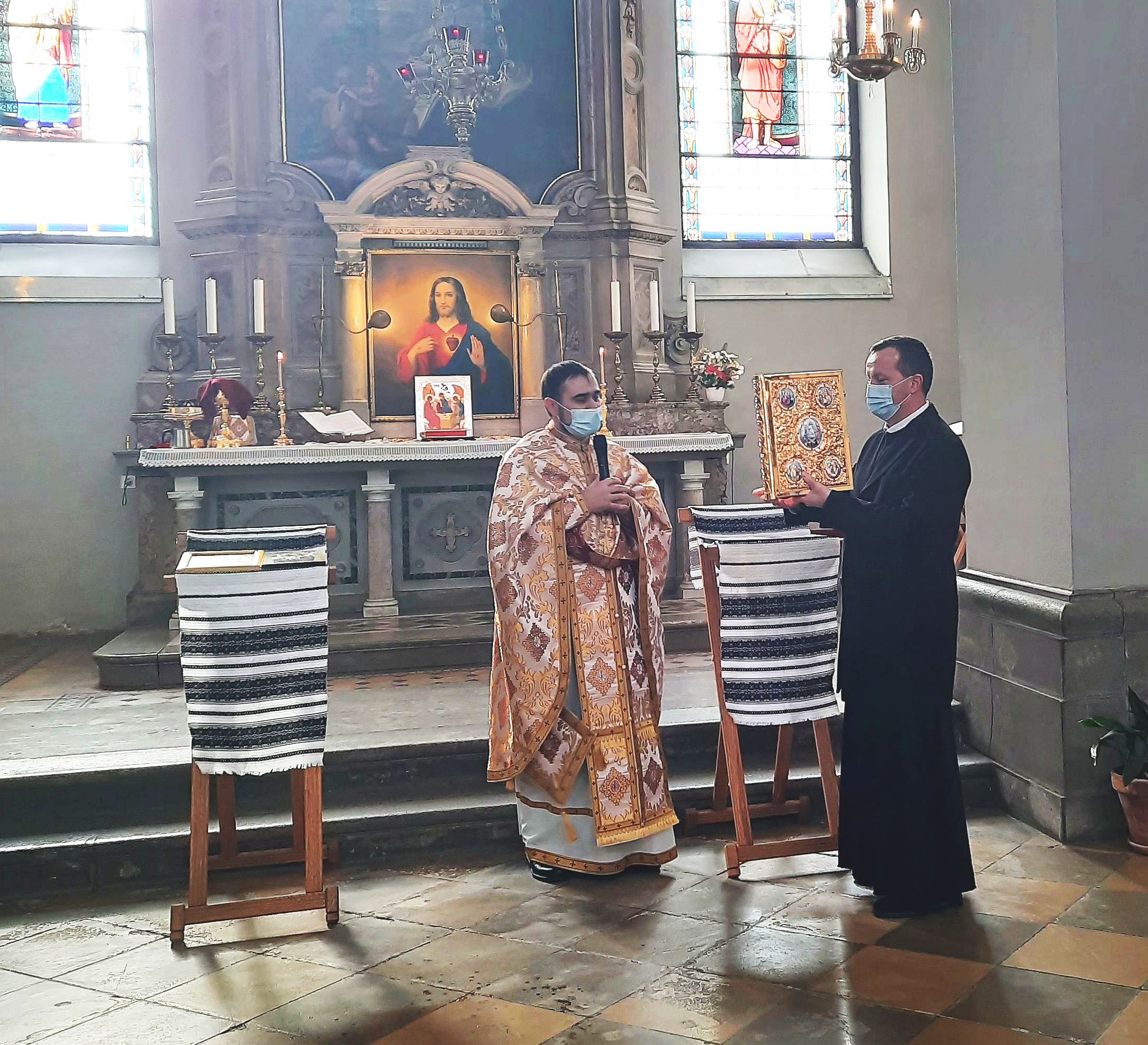 Cu această ocazie, Părintele Pavel Goreanu a înmânat Părintelui Cristian Balint, parohul Bisericii Sfântul Petru din Ljubljana, darul din partea Preafericirii Sale Daniel, Patriarhul Bisericii Ortodoxe Române: o frumoasă ferecătură de Evanghelie realizată manual de către Atelierele Patriarhiei Române, având icoane pictate pe email, drept mulțumire pentru ajutorul, purtarea de grijă și dragostea frățească arătată comunității parohiei.